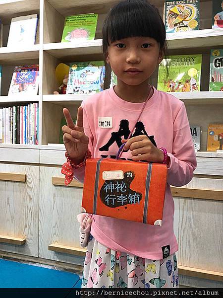 淇淇設計好了,她不喜歡外面行李箱太多東西,只是簡單貼上姓名貼