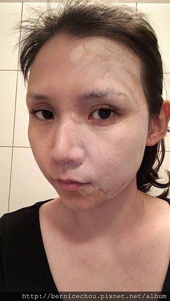 先用在右臉,我是用厚敷,不到五分鐘就發泡完成