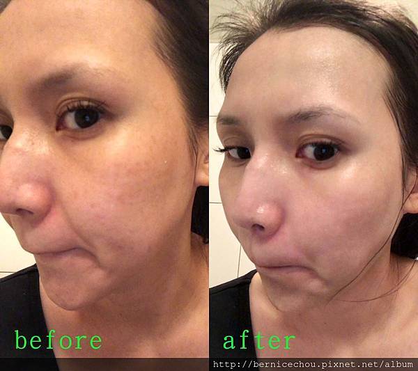 可以明顯看到我右側臉紅腫改善了許多,整體也感覺雪白了一番![]()