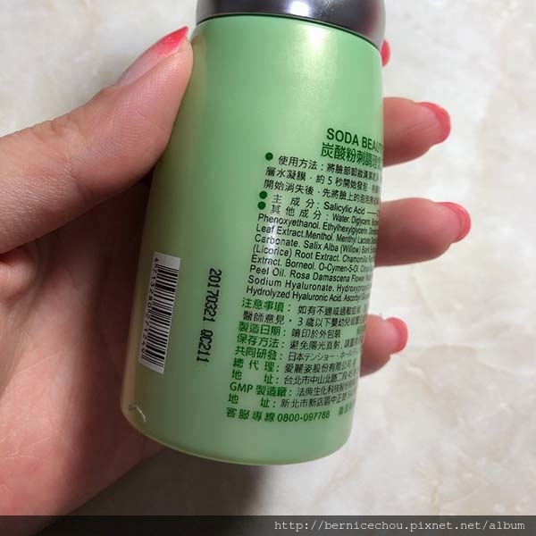 瓶外上有特別說明:「碳酸氣泡喚醒肌膚毛孔,大分子吸附皮膚表層髒污