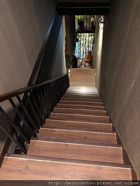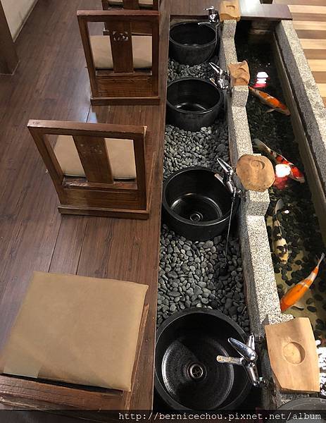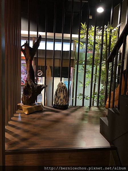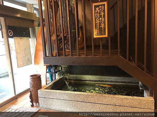 一進門馬上被這彷彿野生的小魚池以及雅致的檜木樓梯給吸引