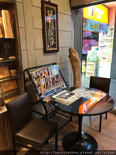 環繞著檜木香,櫃台旁擺設雜誌書報區