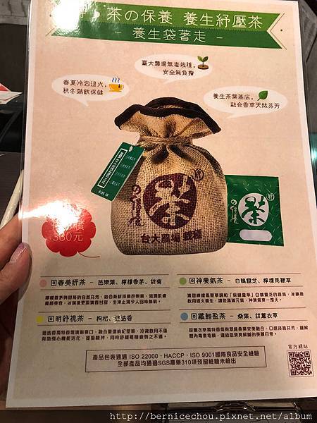 除此之外,「靜足體養生館」也提供「台大農場養生舒壓茶」