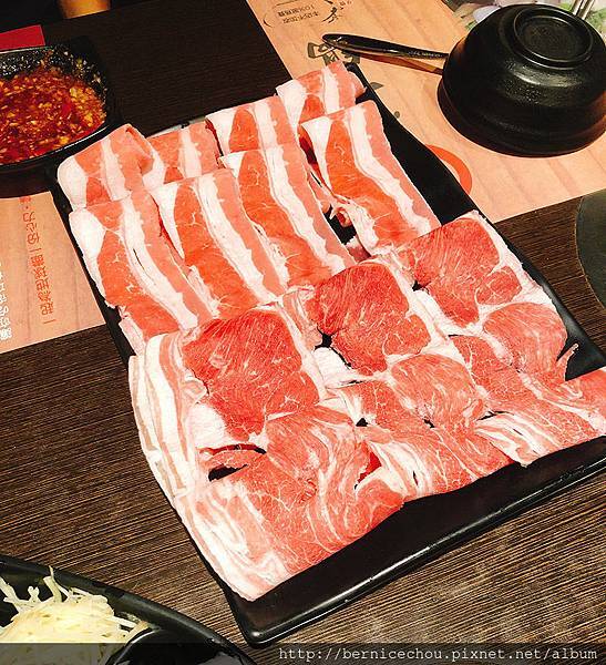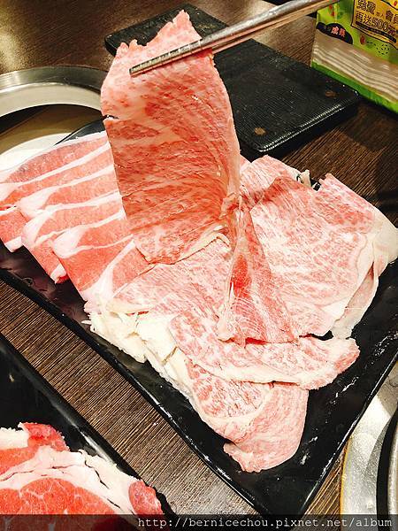 另一半油花很有條理的肉質是來自台灣的有機豬肉片