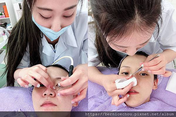 美容師的手法非常輕柔且快速,用輕刮或是按壓黑頭、白頭粉刺