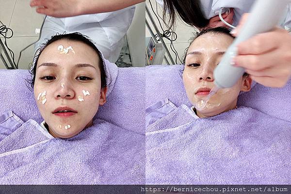 粉刺清完後,美容師幫我用電療導入導出的方式