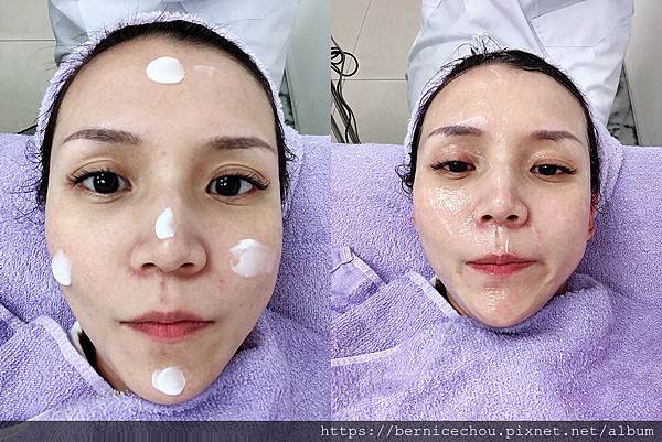 第二次皆採用厚敷,讓面膜在臉上停留20分鐘