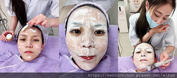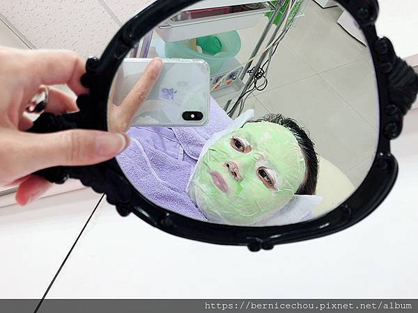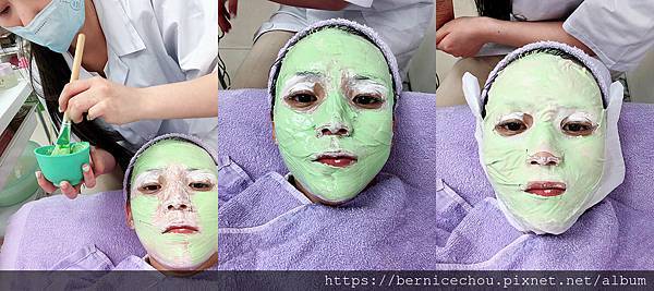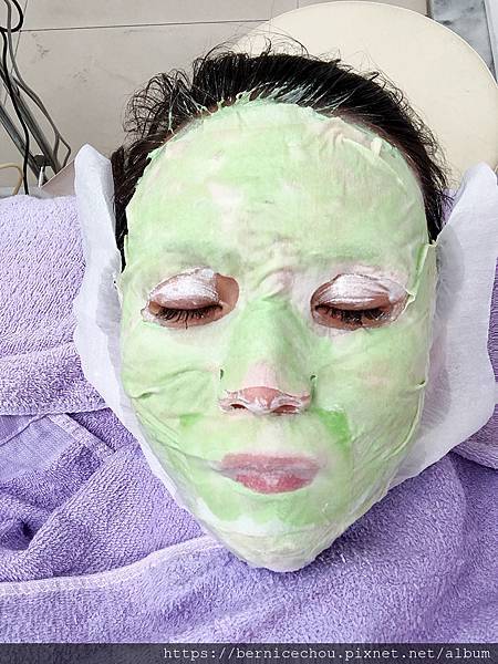 來到最後敷臉的步驟,美容師先幫我塗上白色泥膜的面膜