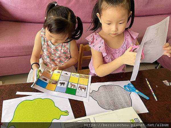 接著,請小朋友將動物剪下來,來一段小肌肉的練習,也算是眼手協調能力訓練
