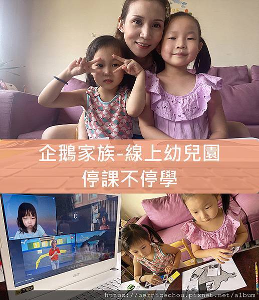 因為疫情關係,市面上推出了玲瑯滿目的線上課程,而我在挑選線上課程的主要原因,是希望能有幼稚園上學的氛圍,主要是妞妞個性內向害羞,一對一太過正式的線上課程,一對一老師專注地對她,她可能會有過多壓力,很可能會無法適應,但如果採用幼稚園形式上的線上課程,小妞的接受度提升,因此也不會有所反彈;小荳因為今年是初次上幼兒園,如果線上課程採用幼稚園的生活方式,以及跟小妞一起上課,讓她提早適應幼稚園生活,企鵝家族幼兒園線上課程剛好非常符合我們兩小的選擇。