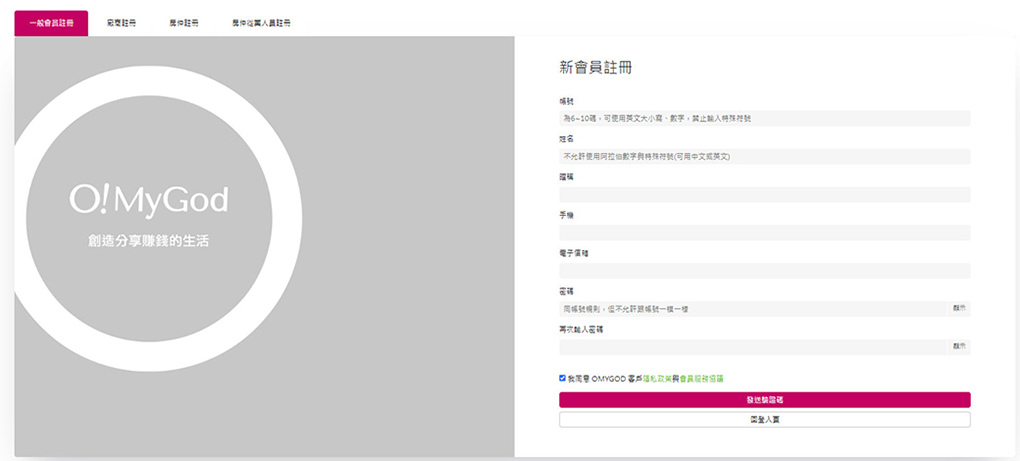 註冊會員:O!MyGOD超級商城 首頁右上角>登入/註冊