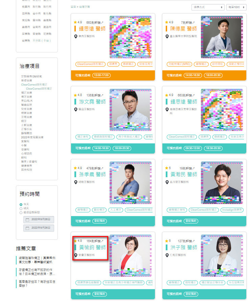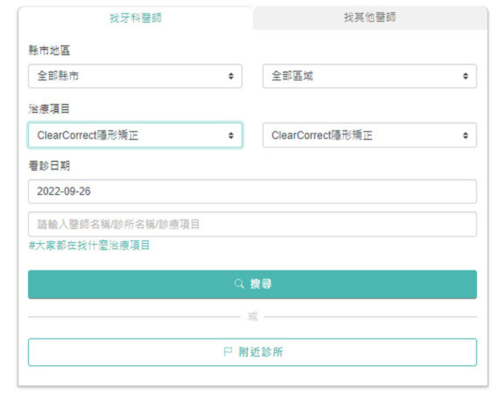 鎖定所在的區域,挑選想要治療的項目及醫生選擇,