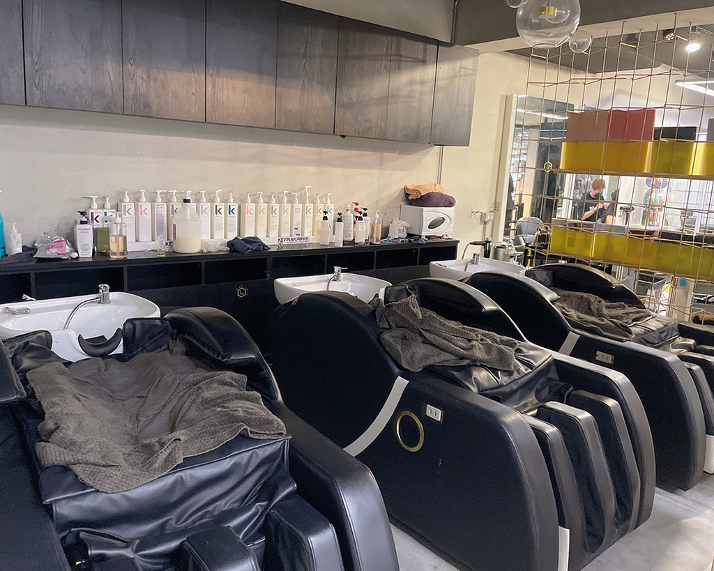 勞倫斯髮廊,選用的洗髮椅都讓人很尊榮感,
