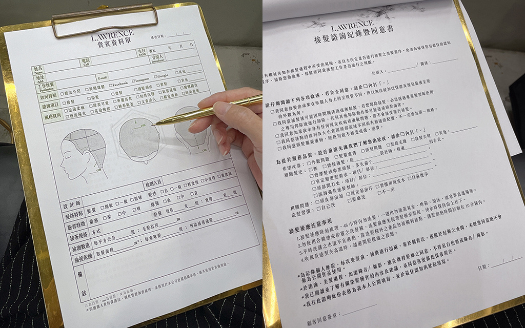 在開始接髮前,會先填寫一份基本資料與同意書,