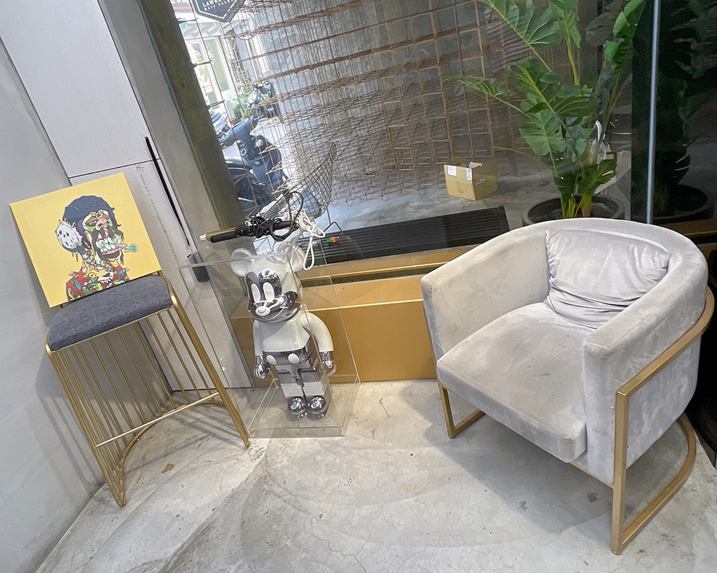 光彩的鷹架擺設,讓這高冷的工業風門面,