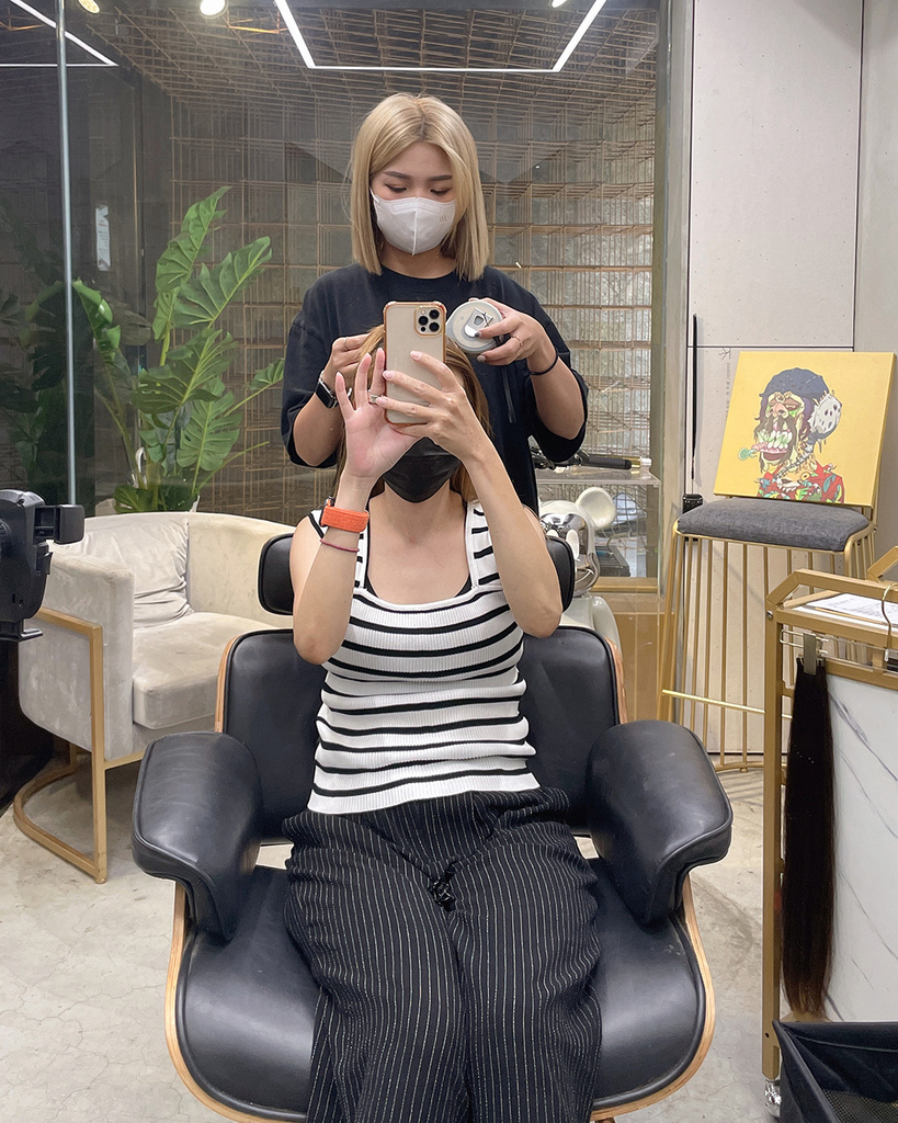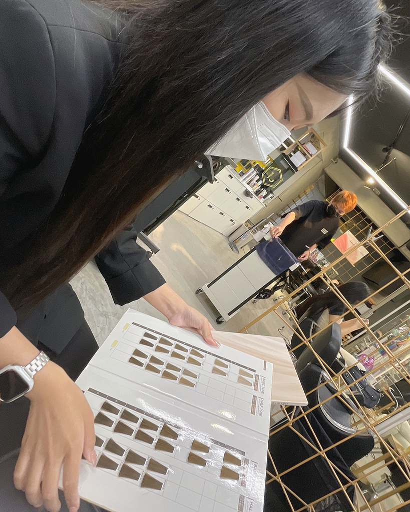 設計師第一步,先將我的頭髮顏色染深,