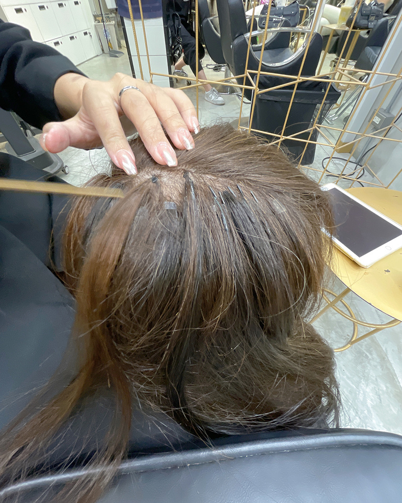 經過設計師的精心介紹,第一次接髮,