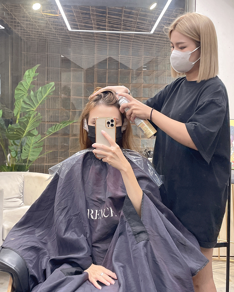 設計師先幫我噴上頭皮隔離,