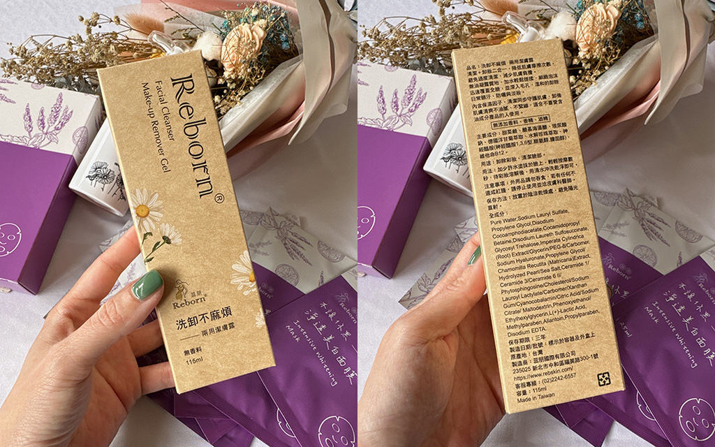 外包裝上有清楚的成分標示、使用方法及有效日期。