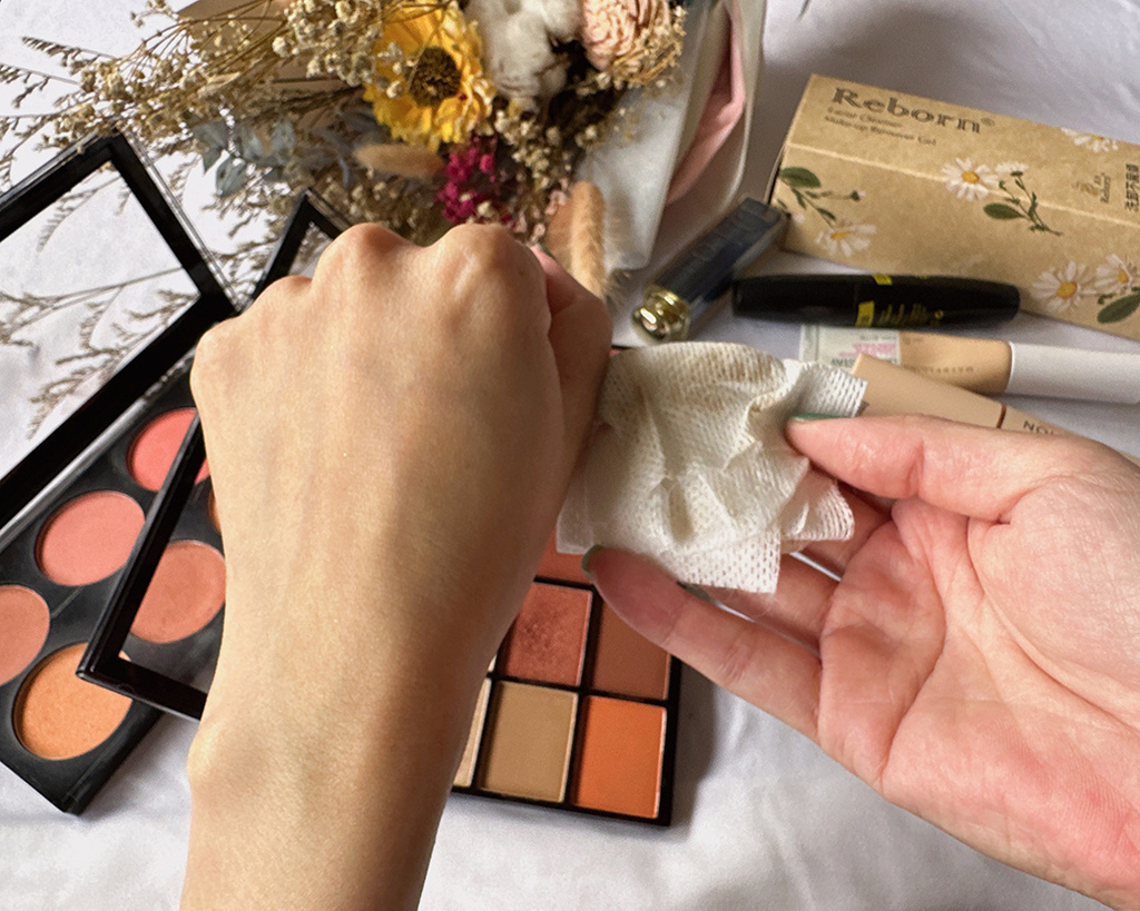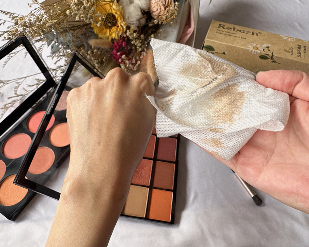再用潔膚巾將妝容擦去,這樣的卸妝方式,