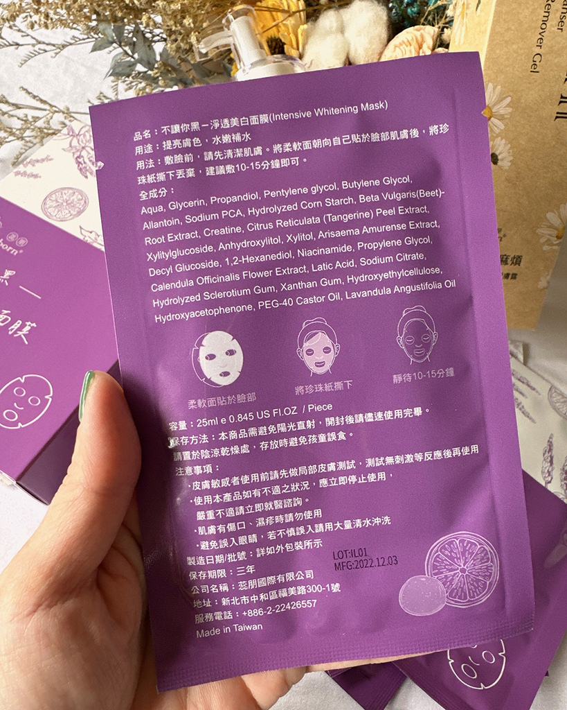 接著分享的是「不讓你黑-淨透美白面膜」,