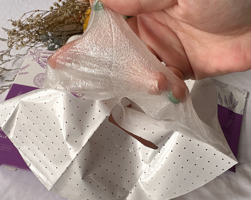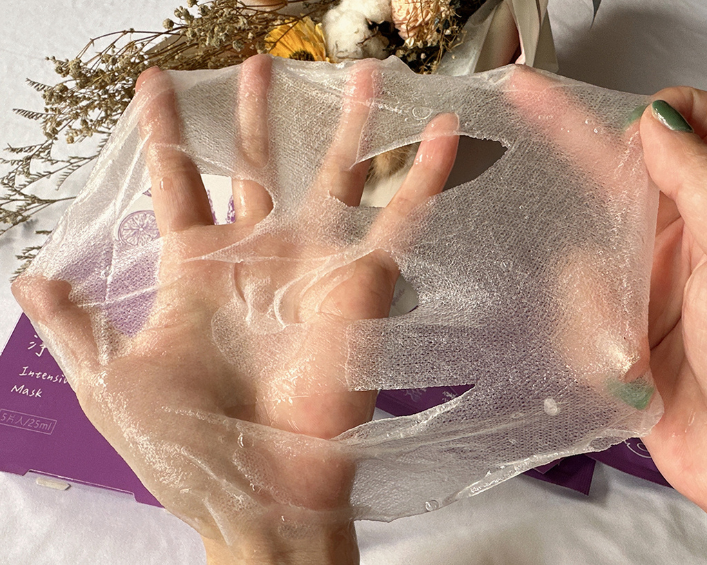 感覺到面膜的纖細質感,吸附著滿滿的精華液,