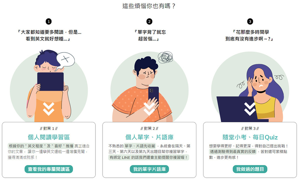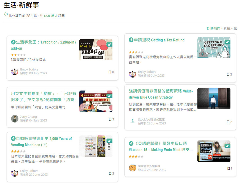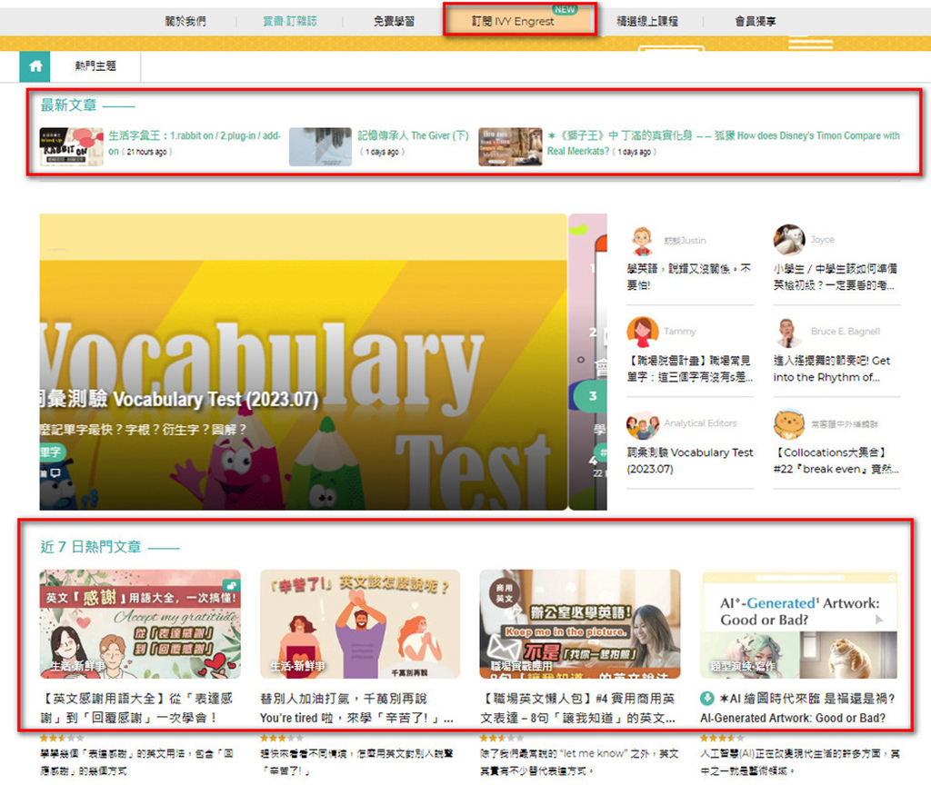 從「時事新聞」、「單字。文法。寫作」、「生活新鮮事」、