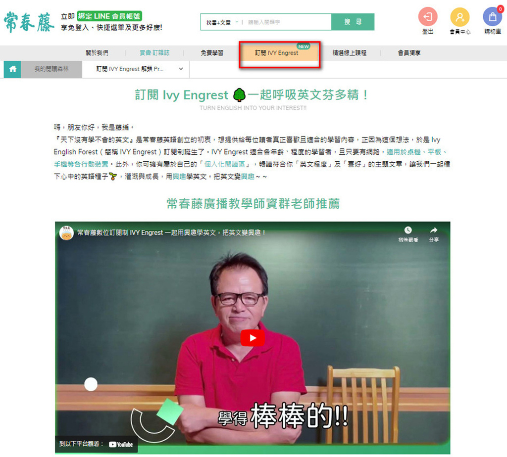 首先,先到「IVY Engrest常春藤數位訂閱制」的官網註冊後,