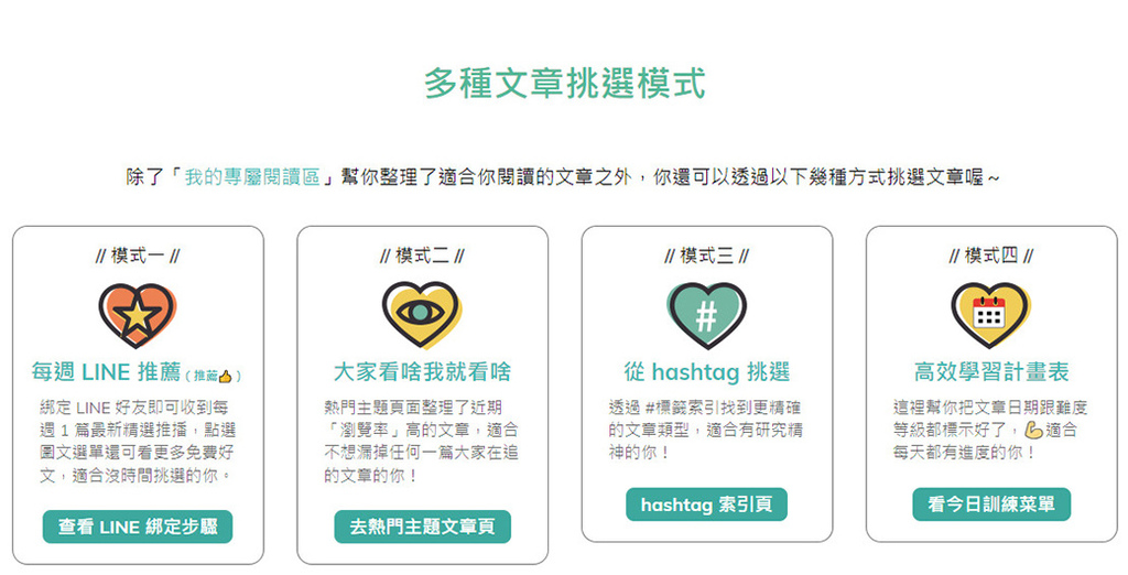依據「英文程度」及「喜好」推播這11種分類裡適合的文章,