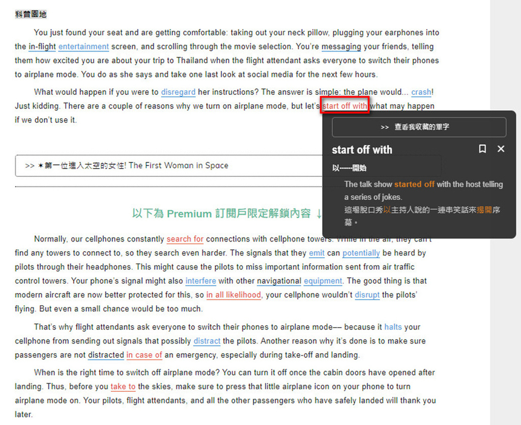 有的文章有youtube影片學習,先是用文字方式聽朗讀。