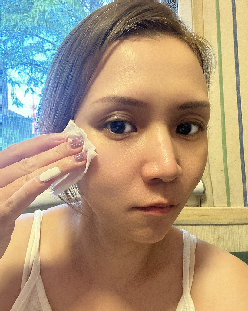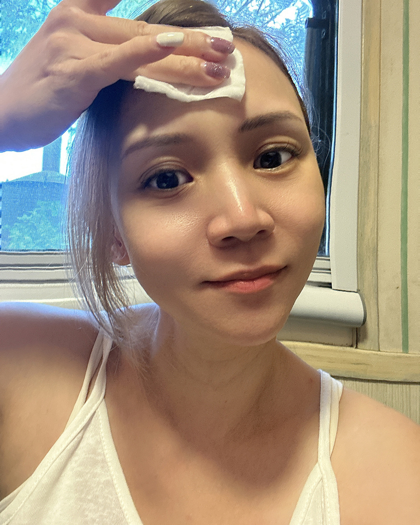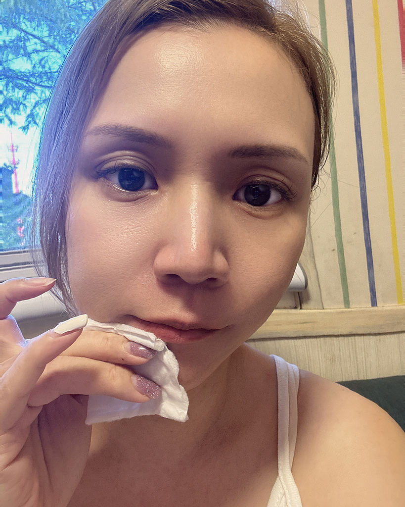 由內而外的擦拭全臉,擦拭過程不黏膩很乾爽,
