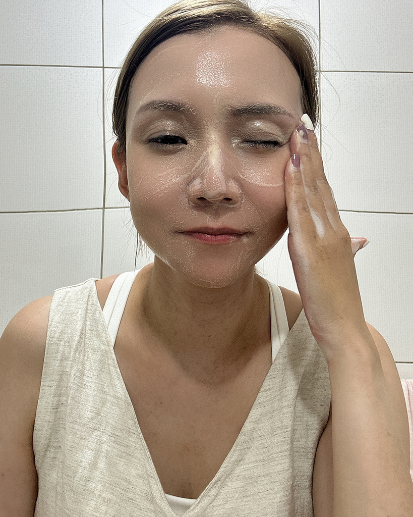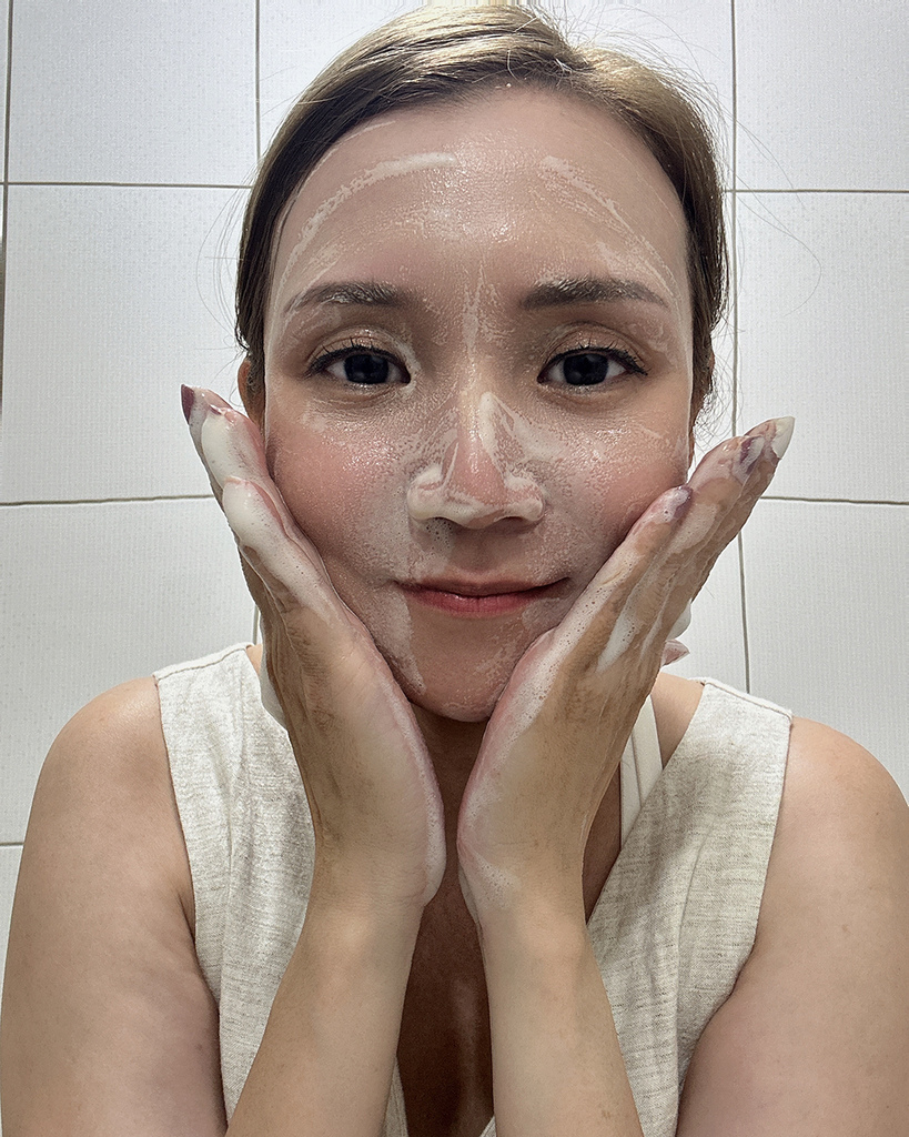 沾少許水揉搓起泡後,於全臉打圈方式清洗即可。