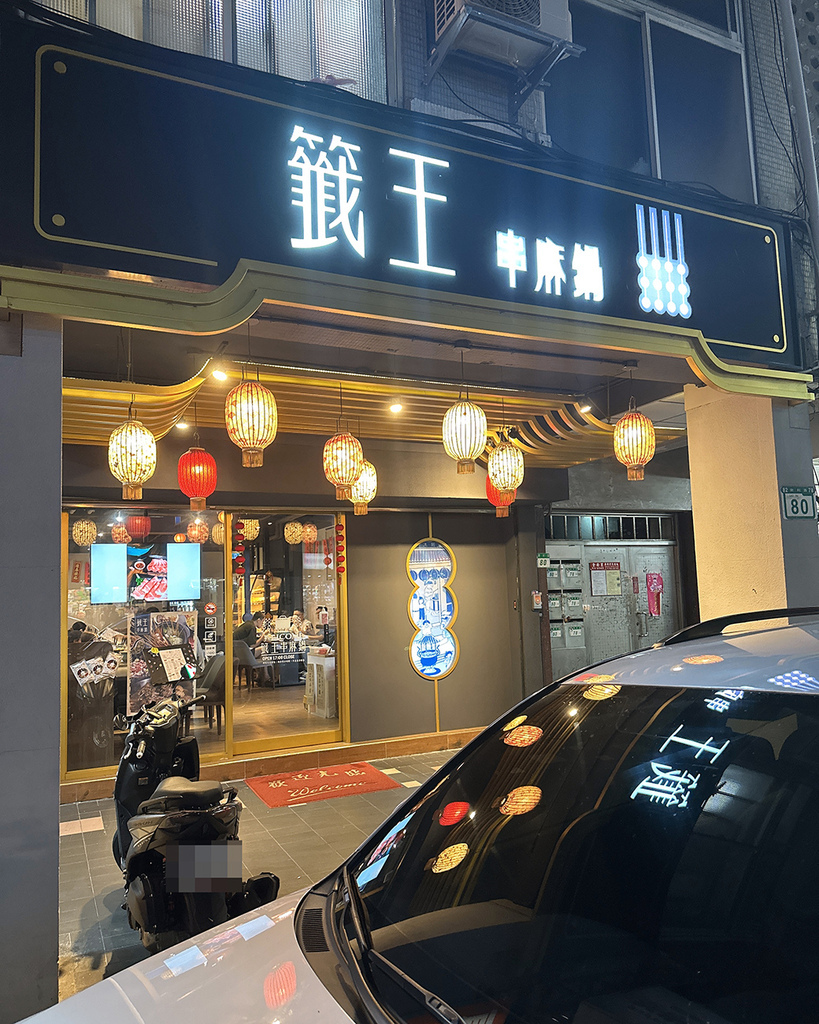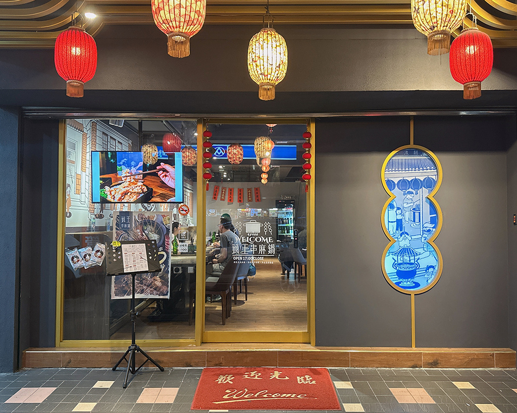 籤王串麻鍋門口掛有許多大紅大金的燈籠,