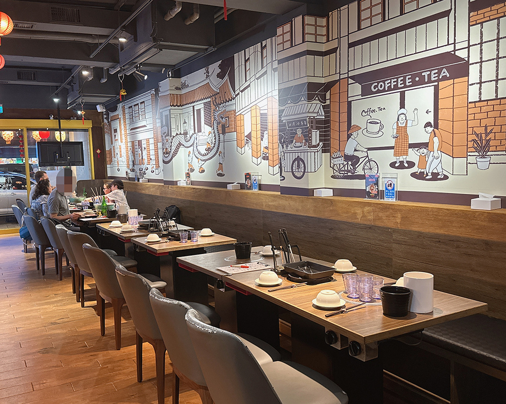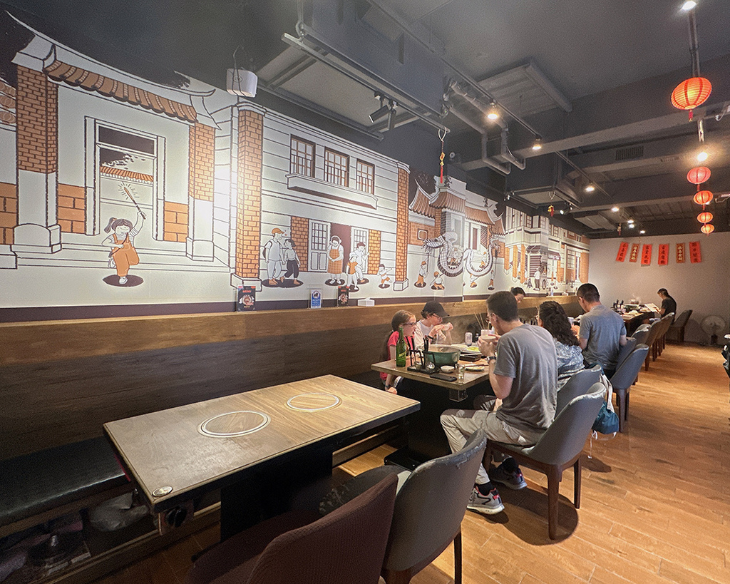 籤王串麻鍋最具有特色的是兩旁繪製的童趣畫作。
