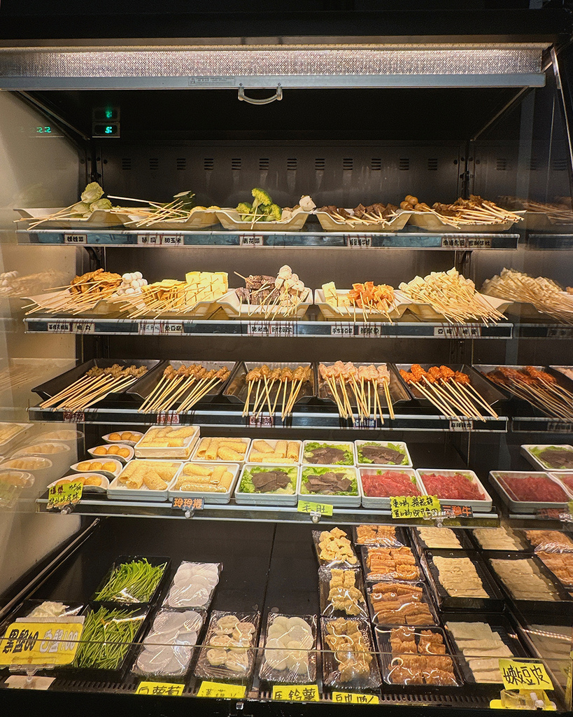 單點品項後,可以致冷藏櫃拿取想要下鍋的串串與鍋物,