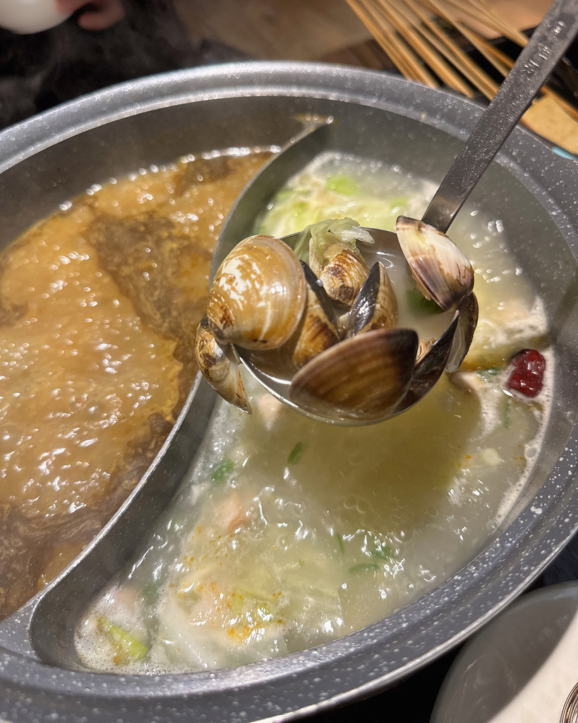 鴛鴦鍋裡的雞白湯可升級為膠原蛤蜊美人鍋喔~ ![]()