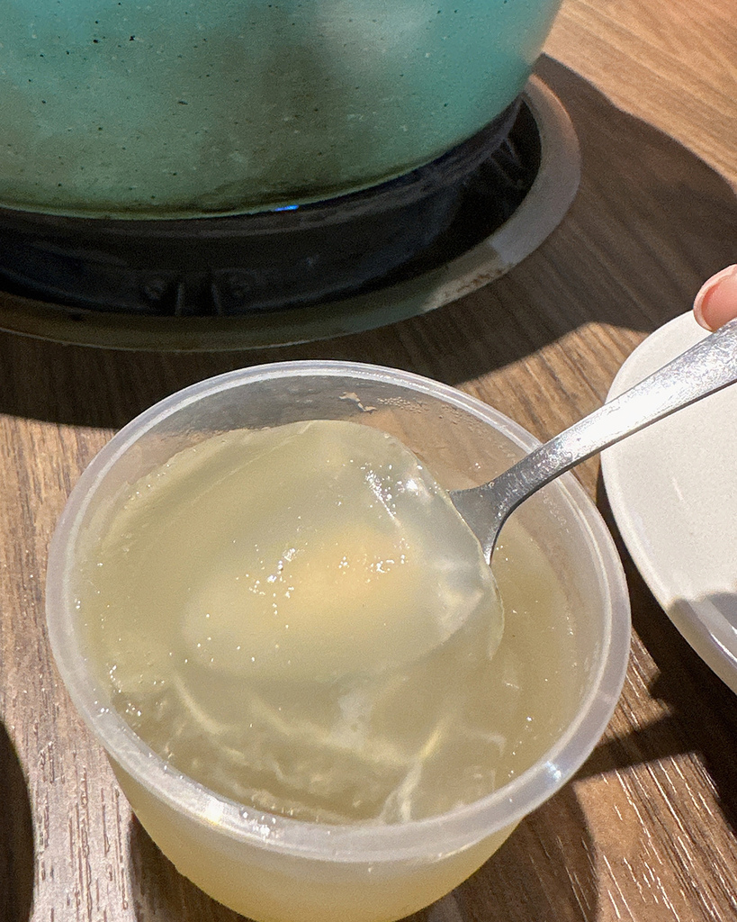 剛上桌的膠原蛋白湯底,馬上來上一碗清爽入口,