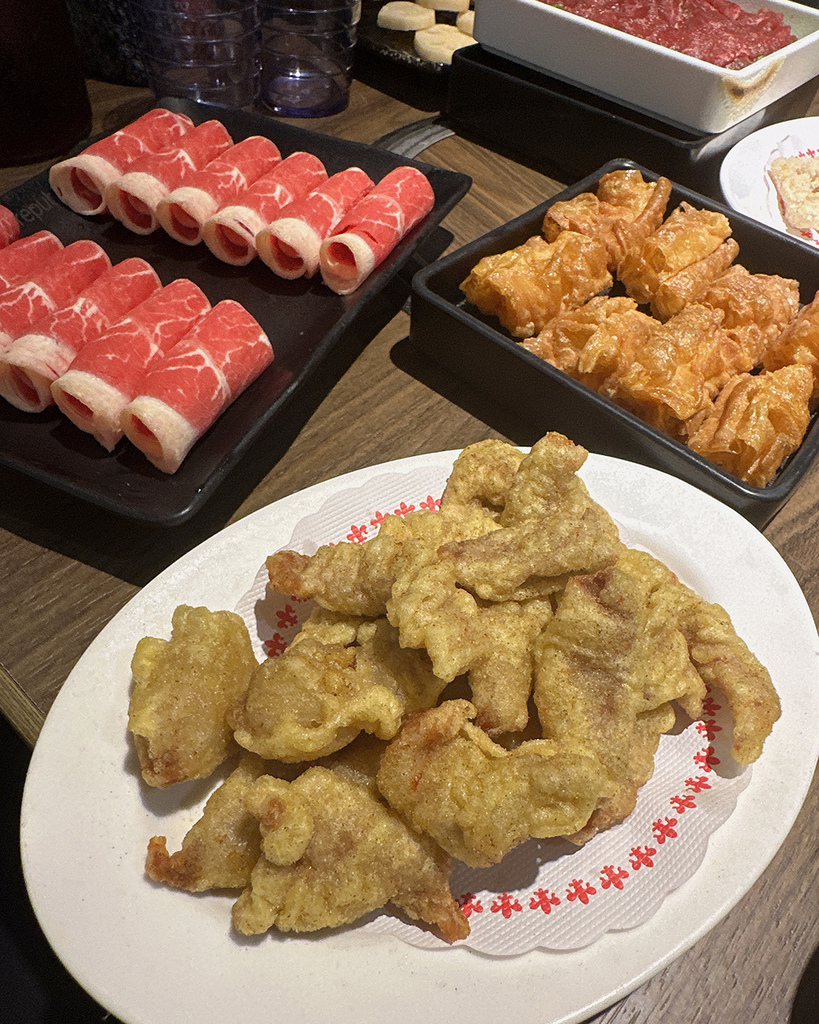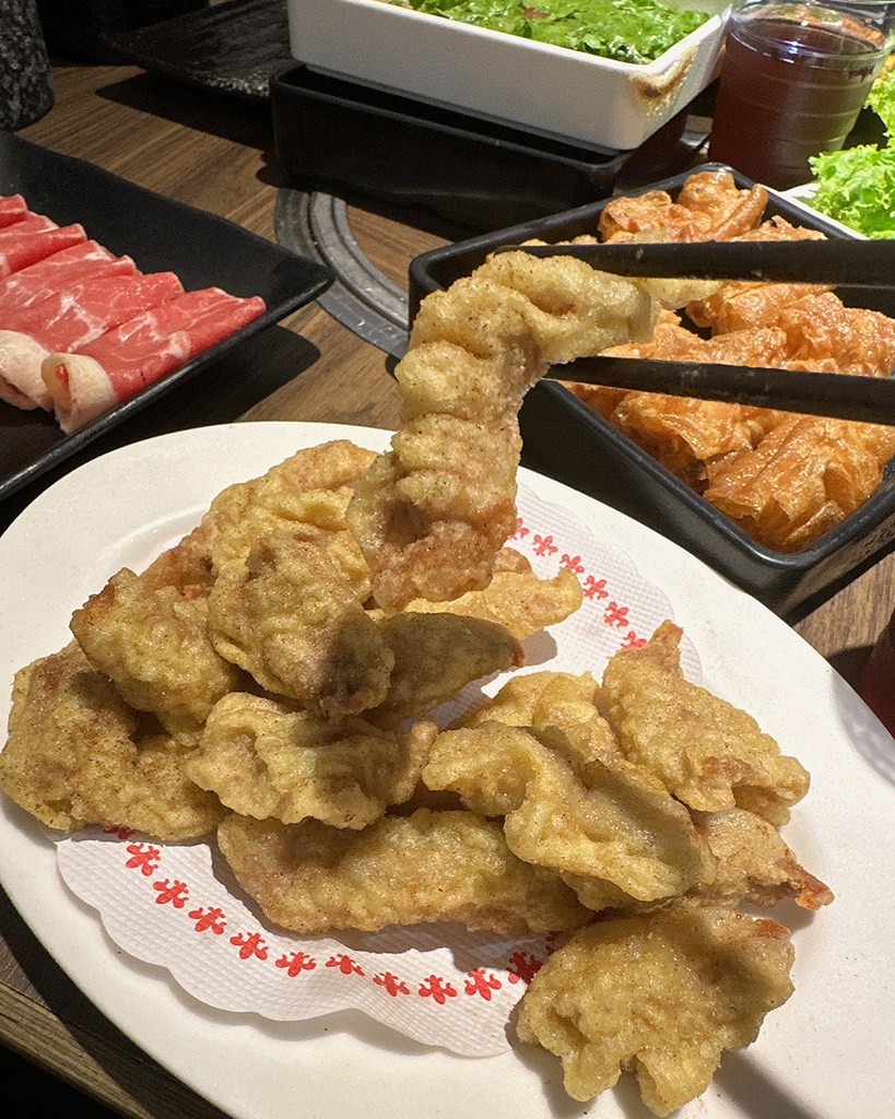 卜肉酥也是店長大力推薦的品項,吃起來外皮酥香,酥脆不油膩,每塊又大又扎實,肉質軟嫩Q彈帶點嚼勁,放入麻辣鍋裡,濃郁的香麻湯汁包覆著卜肉酥,吃起來別有一番風味。