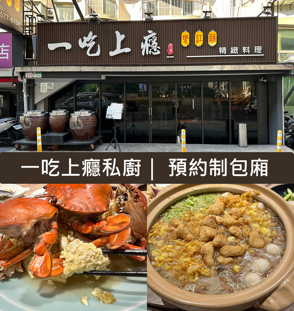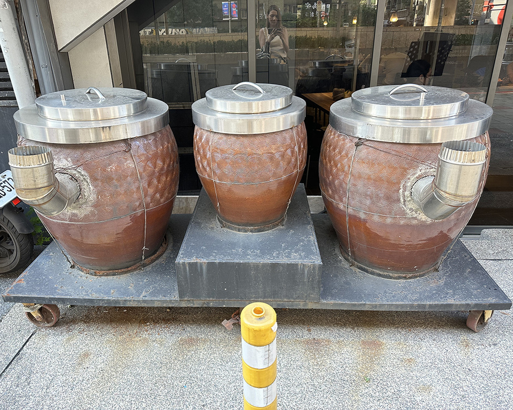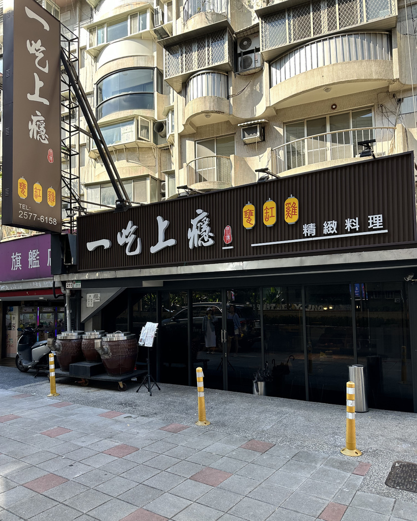 「一吃上癮私廚」門口放置三個甕缸 ,
