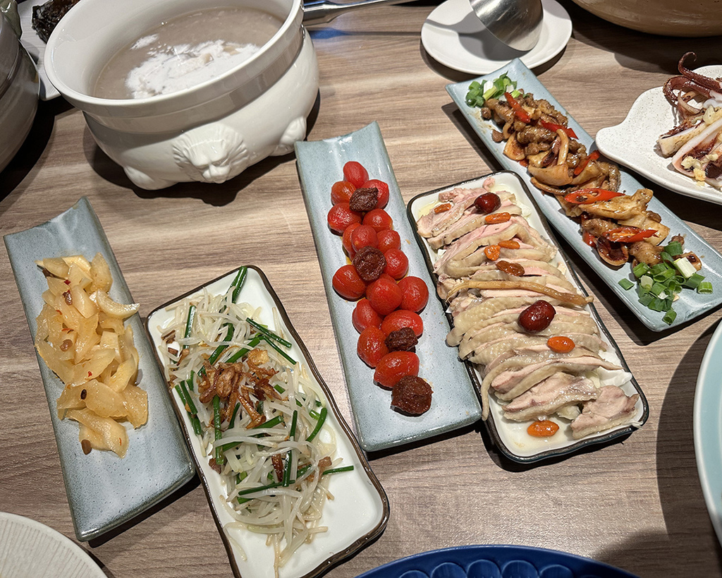 炙椒蘿蔔 涼拌銀芽 梅漬番茄 澎湖淹魷絲 紹酒參香醉雞