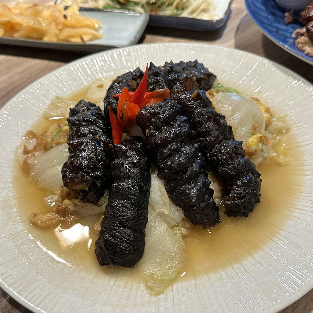 這道料理端上桌誠意十足,海參口感脆彈滑軟,