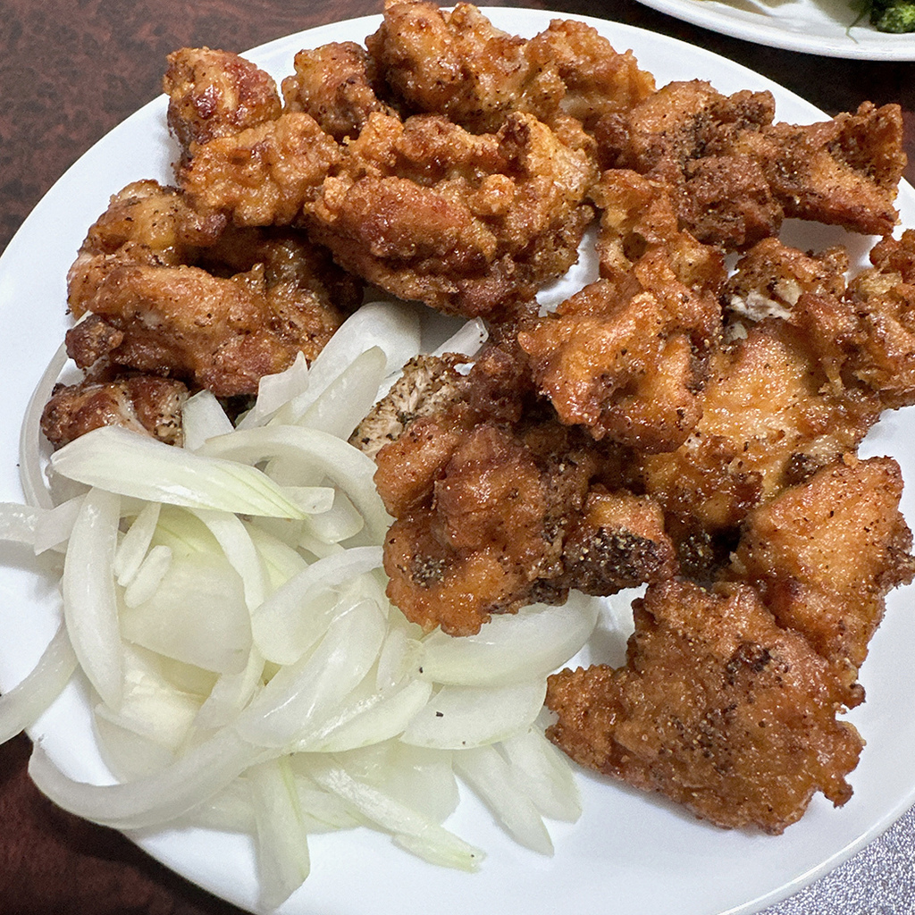 暖男炸雞為了緩解油膩,附上現切洋蔥,