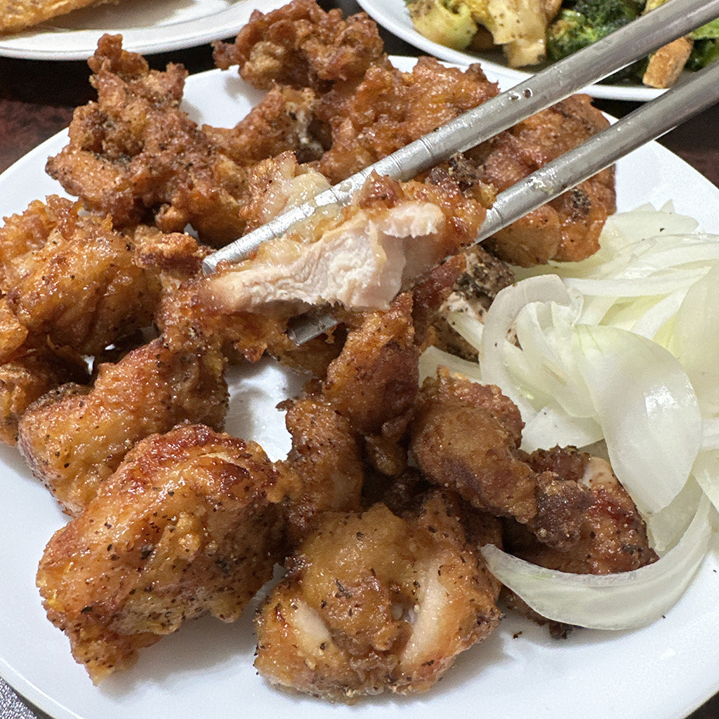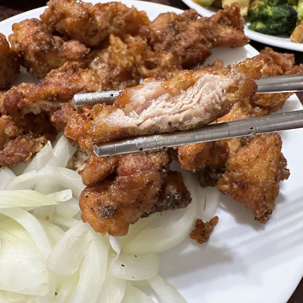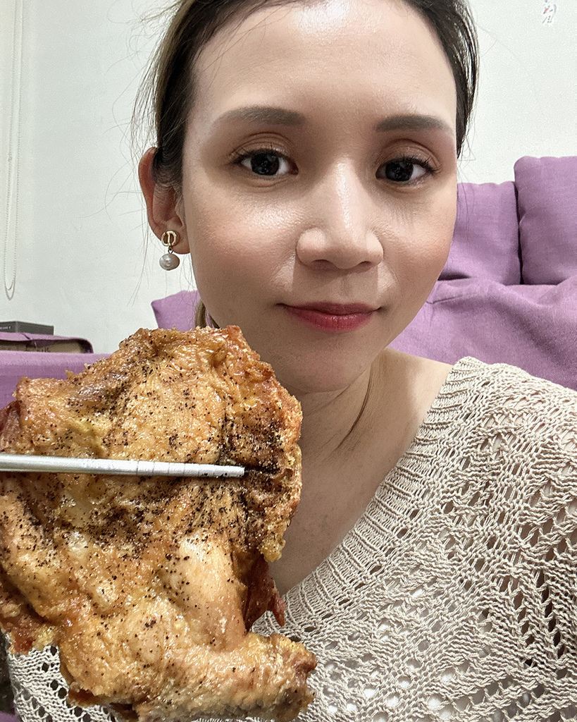 平常老公在吃炸雞排,我都只是吃旁邊的雞肉,