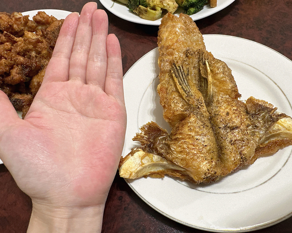 真沒想到魚下巴的尺寸,有如我手掌般的大小,