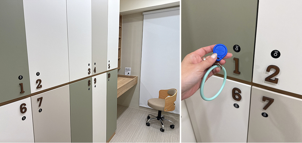 置物櫃是感應式的不用密碼的電子鎖,