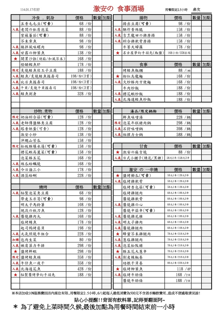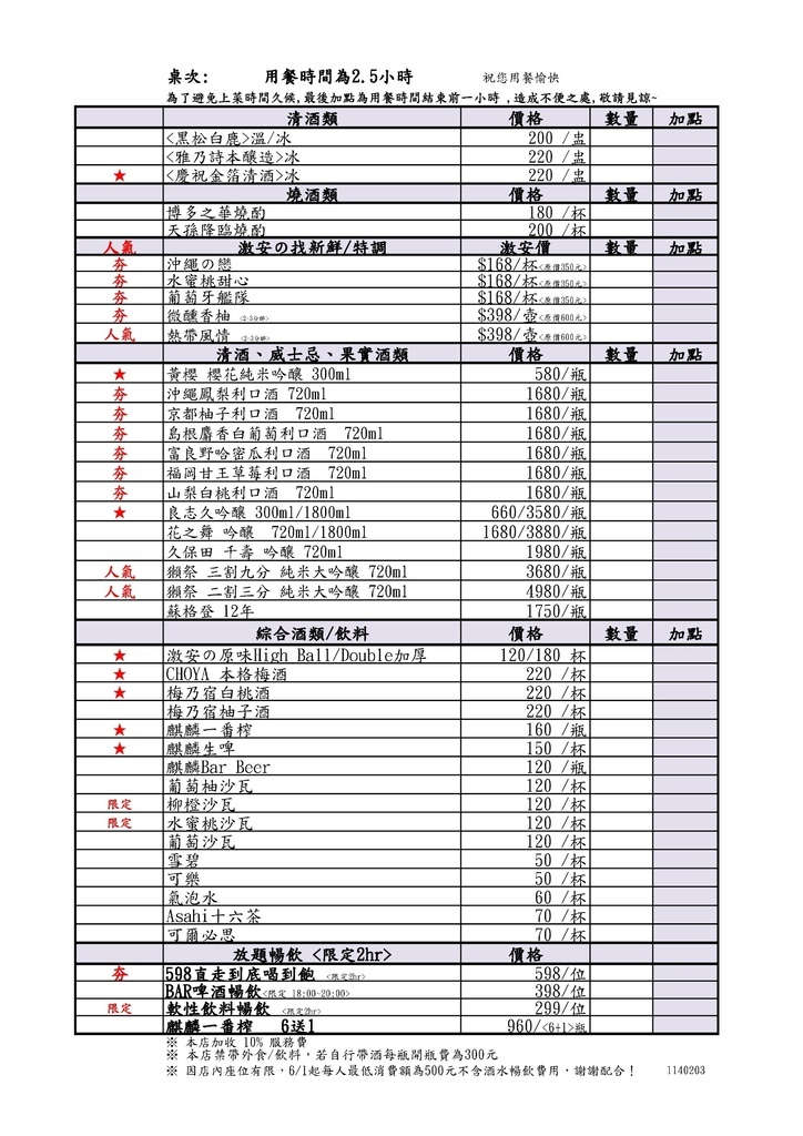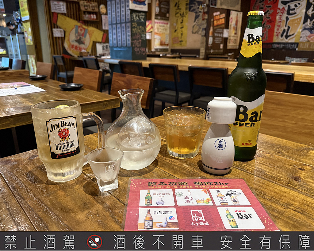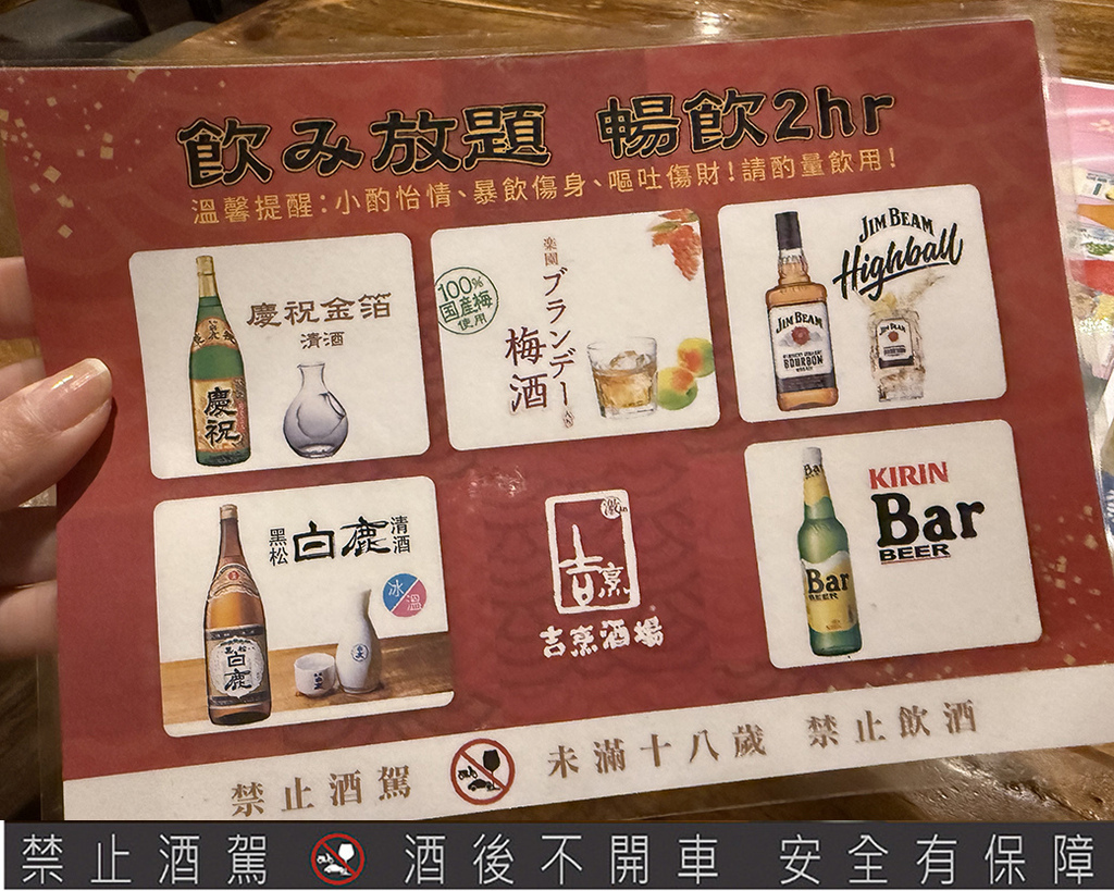(慶祝金箔清酒、黑松白鹿清酒、梅酒、Bar、High Ball),