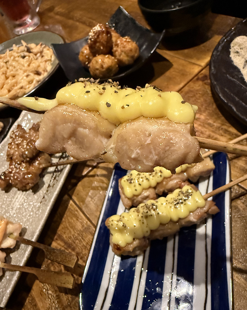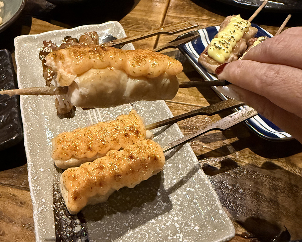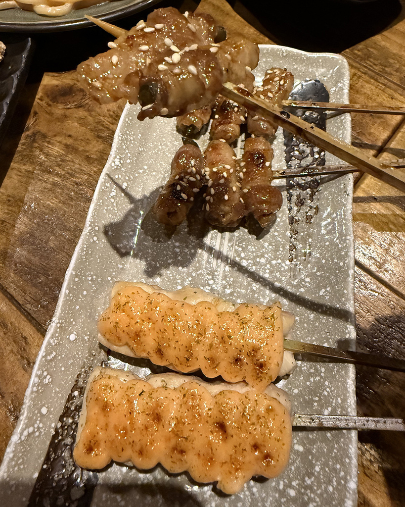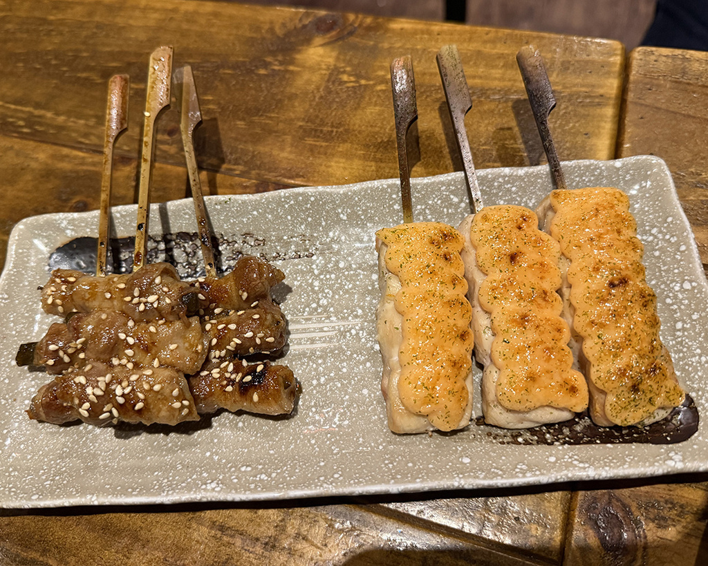 剝皮辣椒卷(3串)$218、明太子雞肉(3串) $198