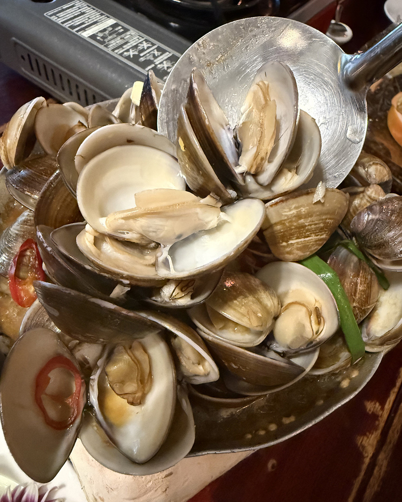 熱騰騰的炒蛤蜊伴隨著醬汁的香氣,