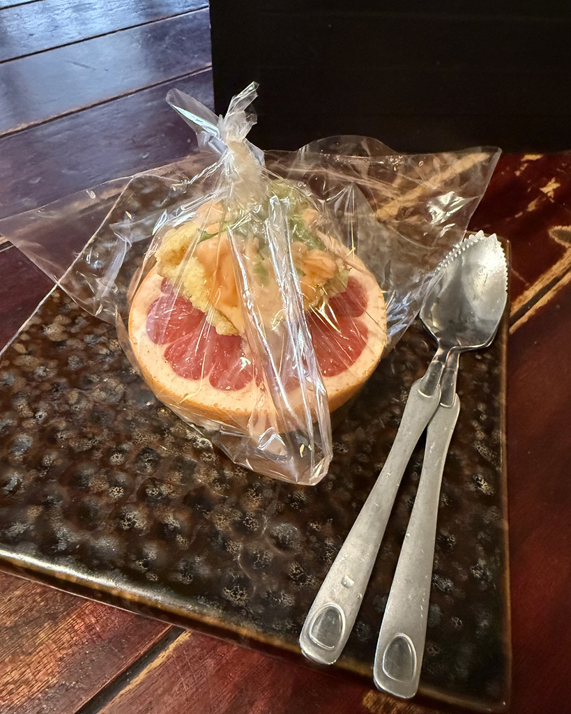 設計就是讓客人能挖取底下的葡萄柚果肉,