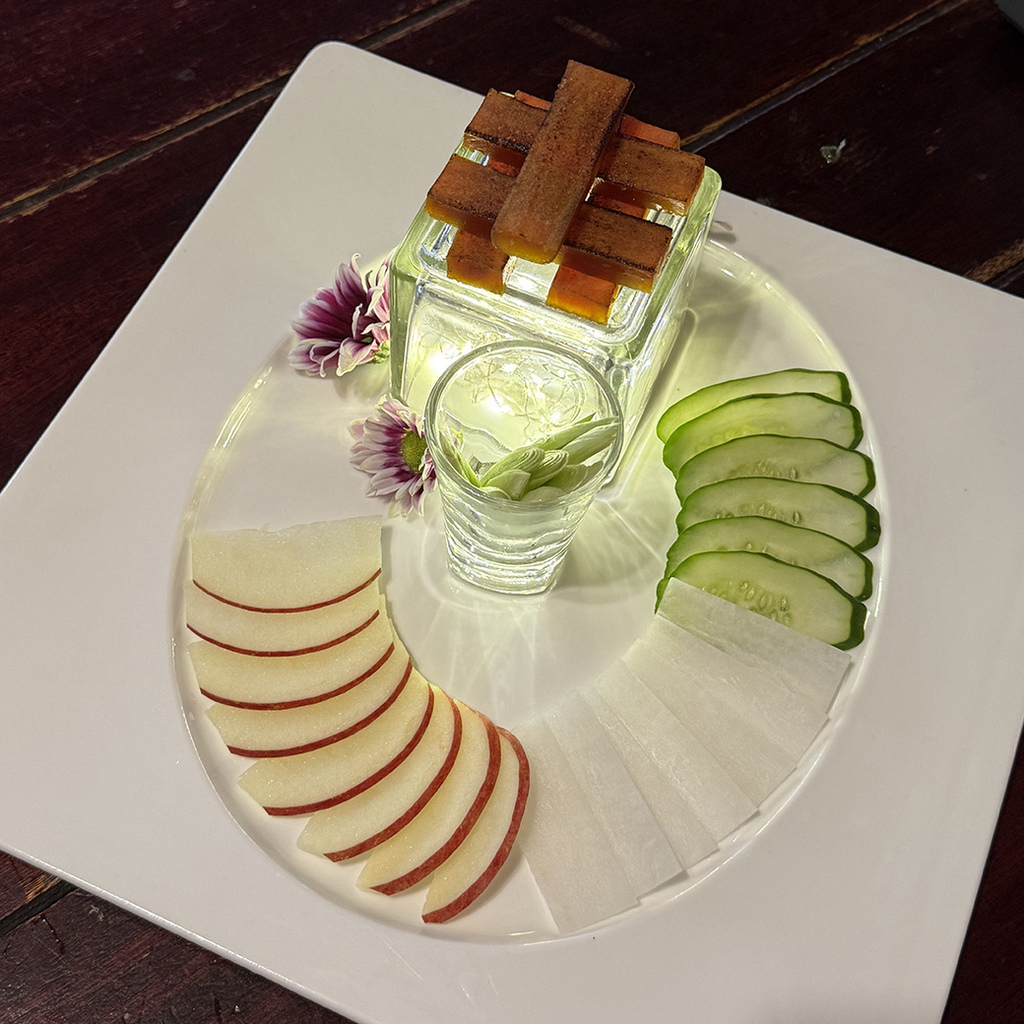 最後以保鮮膜包裹端上桌,視覺感十足。